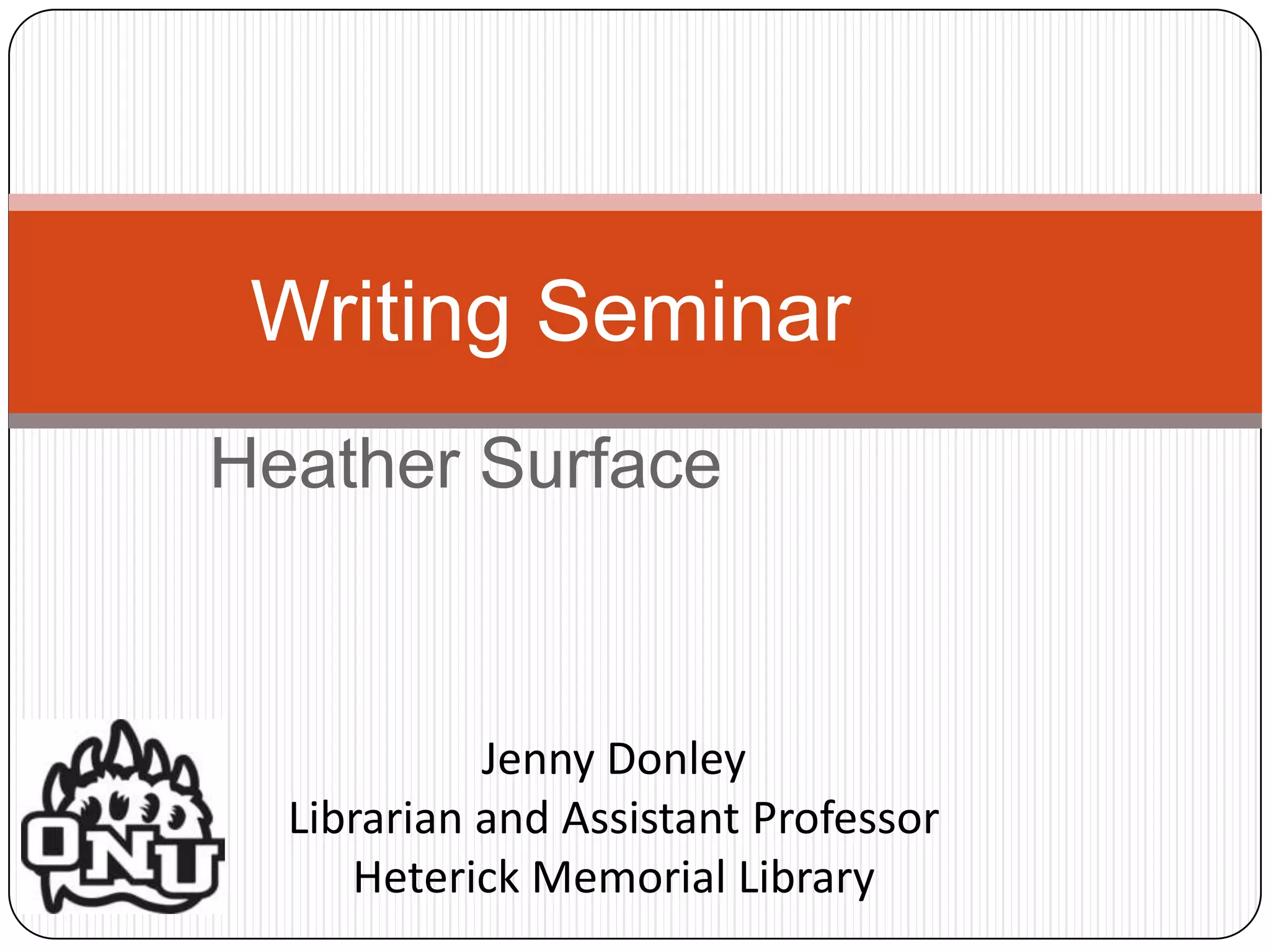 This document summarizes a library seminar presented by Jenny Donley, a librarian at Ohio Northern University. The seminar covered various library resources for research, including the online catalog POLAR for finding books, OhioLINK for accessing materials from other university libraries, and databases for locating journal articles. It provided steps for effective research, including developing topics, background research, evaluating sources, and citing materials. The seminar emphasized ethics in research and avoiding plagiarism. Overall, the seminar aimed to teach students how to use the library and its resources to conduct academic research.