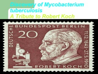 The document discusses the historical context, diagnosis, and surgical treatment of pulmonary tuberculosis, emphasizing the contributions of notable figures like Robert Koch. It details the roles of various diagnostic techniques, types of drug resistance, and outlines specific surgical interventions, including their indications, benefits, and potential complications. Despite advances in chemotherapy, surgery remains necessary for a small percentage of cases, highlighting the importance of careful patient selection and management.
