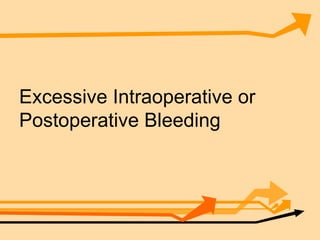 1. Excessive bleeding during or after surgery can be caused by ineffective local hemostasis, complications from blood transfusions, pre-existing coagulation disorders, or disseminated intravascular coagulation.