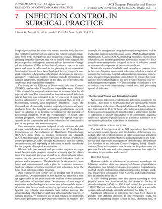 This document discusses infection control in surgical practice. It begins by outlining how surgical procedures expose patients to microorganisms and increase the risk of surgical site infections. Effective infection control requires an organized hospital-wide program to monitor infections, analyze data, implement corrective actions, and educate staff. Key aspects of infection control include proper hand hygiene, appropriate use of antibiotics, sterilization of surgical equipment, and classification of surgical wounds according to infection risk. Host factors like age, health status and operative factors like surgery duration influence infection risk. Strict adherence to infection control standards helps reduce surgical complications and healthcare costs.