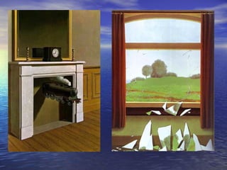 Surrealism was a cultural movement in the 1920s that aimed to free the mind and senses through artworks that used real objects as metaphors for freedom. Officially founded in 1924 in Paris by poet André Breton, surrealism was influenced by Freudian psychoanalytic theory and sought to uncover hidden parts of the unconscious mind through techniques like automatic writing, dream analysis, and the exquisite corpse exercise. Key surrealist artists included Salvador Dalí, René Magritte, and Joan Miró, whose paintings employed techniques like juxtaposition and transparency to challenge rational thought.