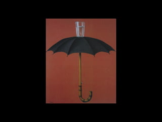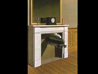 This document provides an overview of Surrealism, a revolutionary artistic movement that began in the early 20th century. It discusses key Surrealist artists like Andre Breton, Andre Masson, Joan Miro, Salvador Dali, Rene Magritte and their major works. Surrealism was influenced by psychoanalysis and aimed to represent unconscious thoughts and dreams. It had two strands - biomorphic works by artists like Masson and Miro, and realistic works featuring recognizable objects by Magritte and Dali. The movement sought to challenge rational thought and social norms through automatic writing and painting techniques.