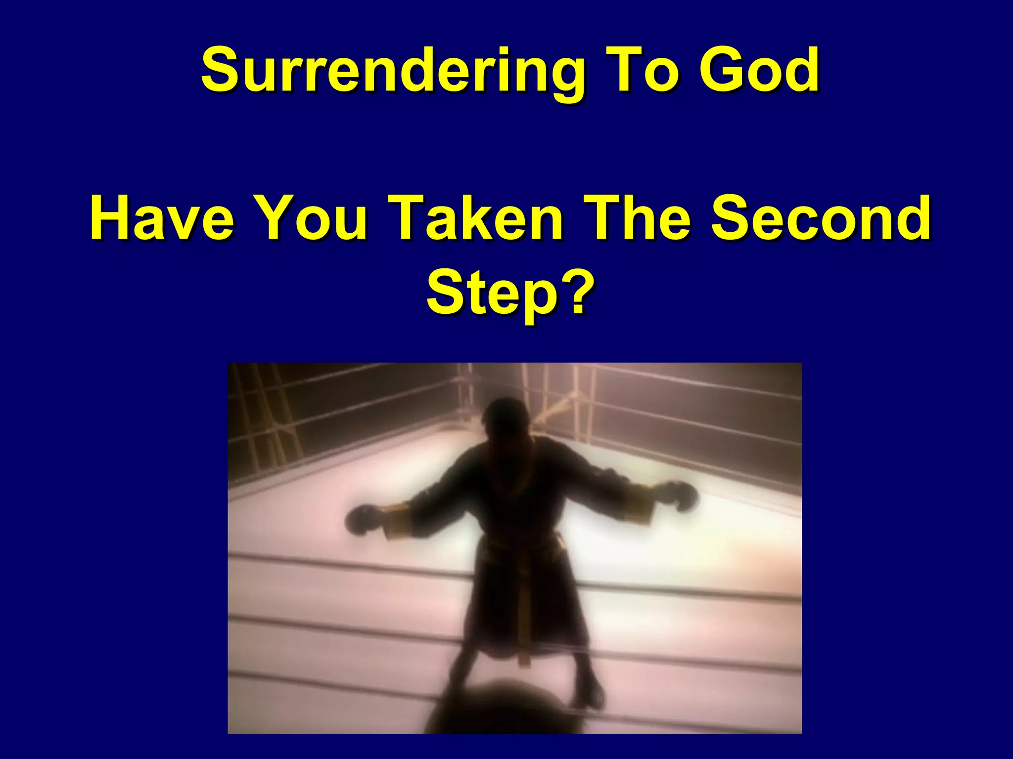 The document discusses the concept of surrendering to God, emphasizing that true surrender involves submitting to His will rather than trying to control one's own life. It outlines different perspectives on surrendering and argues that genuine submission leads to spiritual fulfillment and the resolution of life's struggles. Ultimately, it asserts that only through surrendering to God can individuals overcome sin and cultivate a meaningful relationship with their Creator.