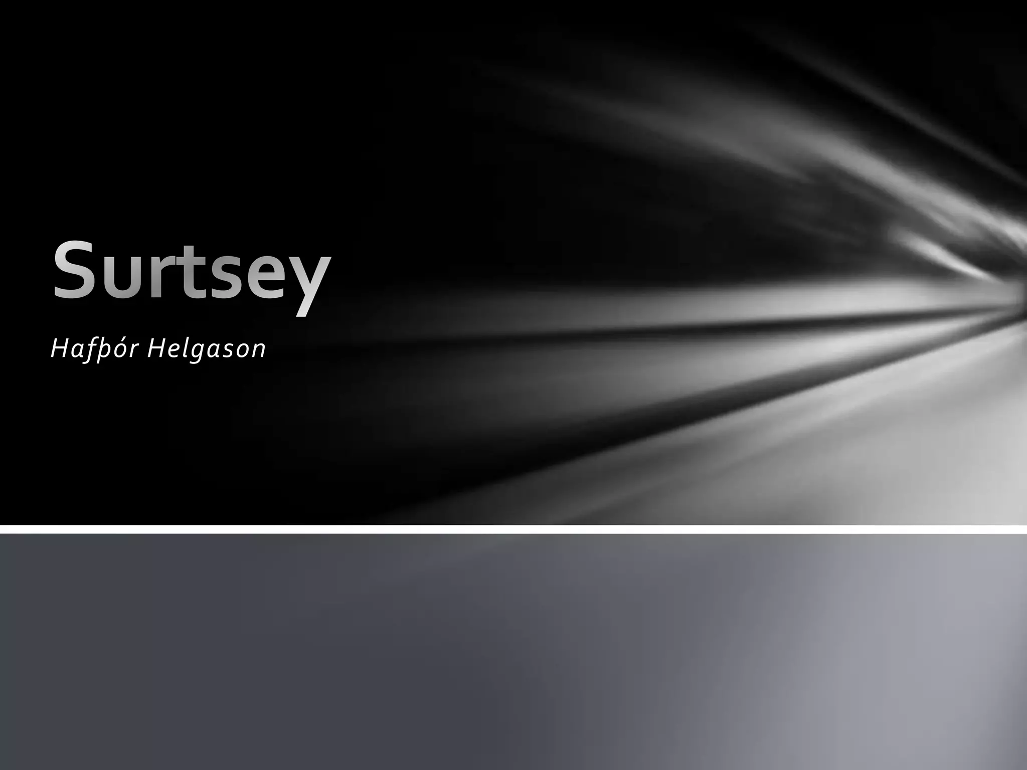 1964 varð kröftugtflæðigos í eynniGosið stóð í þrjú og hálft ár. gufa og gosmökkur náðu í 3500 m hæðÞað er bannað að fara á Surtsey vegna tilrauna hjá vísinda mönnumSurtseyjar gosið er mest allra sjávargosa sem hafa orðið við Íslandsstrendur