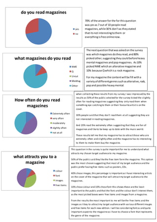 The document summarizes the results of a survey conducted to inform the creation of a new music magazine. Key findings include: