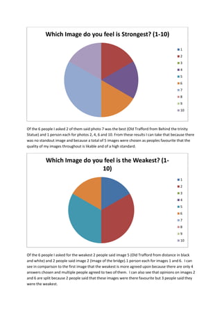 - Photos 5 and 2 were considered the weakest, receiving 2 votes each.