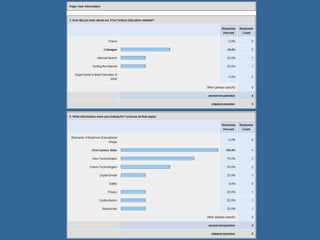 The document outlines a user information collection survey conducted via Survey Monkey, aimed at gathering educational context and contact information from visitors. It includes questions about how users found the site, what information they seek, and their ratings on website aspects like navigation and accessibility. Additionally, it features open-ended questions for user feedback to enhance the site's usability and accessibility.