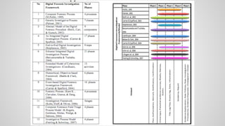 The document summarizes 7 papers related to digital forensics research. It outlines the objectives, methodologies, challenges, and directions for future research discussed in the papers. The papers examine topics such as digital forensic models, challenges faced by researchers and practitioners, mobile device forensics, and the need for standardization and new tools to address growing data volumes, encryption, and other issues created by emerging technologies.