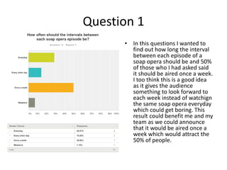 - The document describes the results of a survey about audience preferences for soap opera elements and themes.
