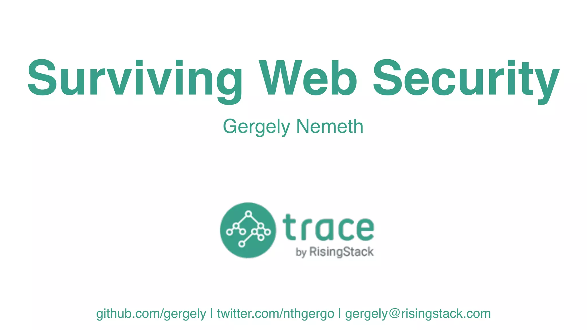 This document discusses various security vulnerabilities and strategies for defending against attacks. It begins by describing common attacks like SQL injection, brute force attacks, and session hijacking. It then outlines approaches to mitigate these risks such as implementing SSL, input validation, secure cookies, and keeping dependencies up-to-date. The document stresses that security is a shared responsibility and must be incorporated into development practices through techniques like writing stories with security acceptance criteria.