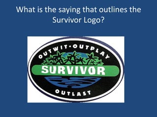 The document discusses the practice of "spoiling," which is unveiling hidden information about the TV show Survivor before episodes air. It focuses on how spoilers reveal information to audiences and describes the relationship between producers and audiences. The document is a quiz about Survivor with multiple choice and fill-in-the-blank questions testing knowledge of the show's logo slogan, definition of spoiling, and the main focus of an chapter about the relationship between producers and those who share insider information.