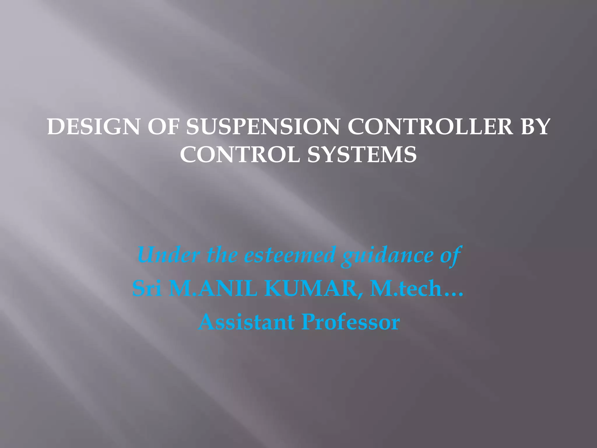 This document describes the design of a controller for an automobile suspension system using various control system methods. The objective is to reduce oscillations and settling time when the vehicle encounters bumps and potholes to improve passenger comfort. A quarter-car model is used to represent the system and analyze the open-loop response. Frequency response, state-space, and digital control design methods are applied to design controllers. Simulink modeling is also used to simulate the closed-loop response. The results show that the designed controllers reduce oscillations to below 5mm and settling time to less than 5 seconds, providing a satisfactory suspension system.