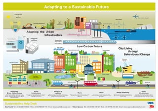 The document introduces five new sustainability applications developed by URS Scott Wilson to help clients achieve resilience in the face of climate change: