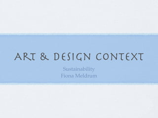 Sustainability refers to using resources that can be replenished quickly, like bamboo, cork, and rubber. It is about ensuring current living does not negatively impact the future. Personal sustainability actions include recycling, using public transport, switching off electronics, and seeking grants for solar panels. Locally, one can buy local produce, use green waste centers, and support fair trade. Nationally, governments can support buses, wind farms, and solar grants. Internationally, policies aim to increase corporate responsibility and reduce disagreements between countries. Bioregionalism uses local natural materials appropriate to the ecology, economy, and culture of a region.