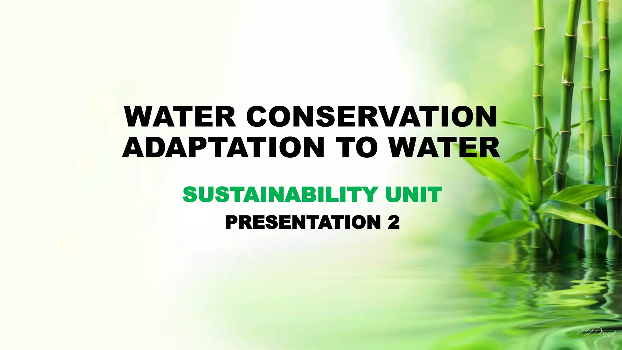 The document details water conservation by outlining its usage in households, highlighting that 30% goes to showers and toilets, and provides statistics on various water uses. It also presents fascinating facts about water, the unique adaptations of animals and plants in different environments like deserts, rainforests, and alpine regions. Additionally, it emphasizes the importance of water sustainability and the urgent need to manage freshwater resources responsibly.