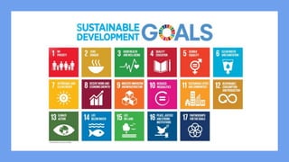 The document outlines the United Nations' Sustainable Development Goals (SDGs), which consist of 17 interconnected goals aimed at addressing global challenges and ensuring sustainability for future generations by 2030. It highlights the importance of universality, integration, and transformation in achieving these goals. Additionally, it explains how natural farming contributes to several SDGs, particularly in areas such as zero hunger, good health, clean water, responsible consumption, and life on land.