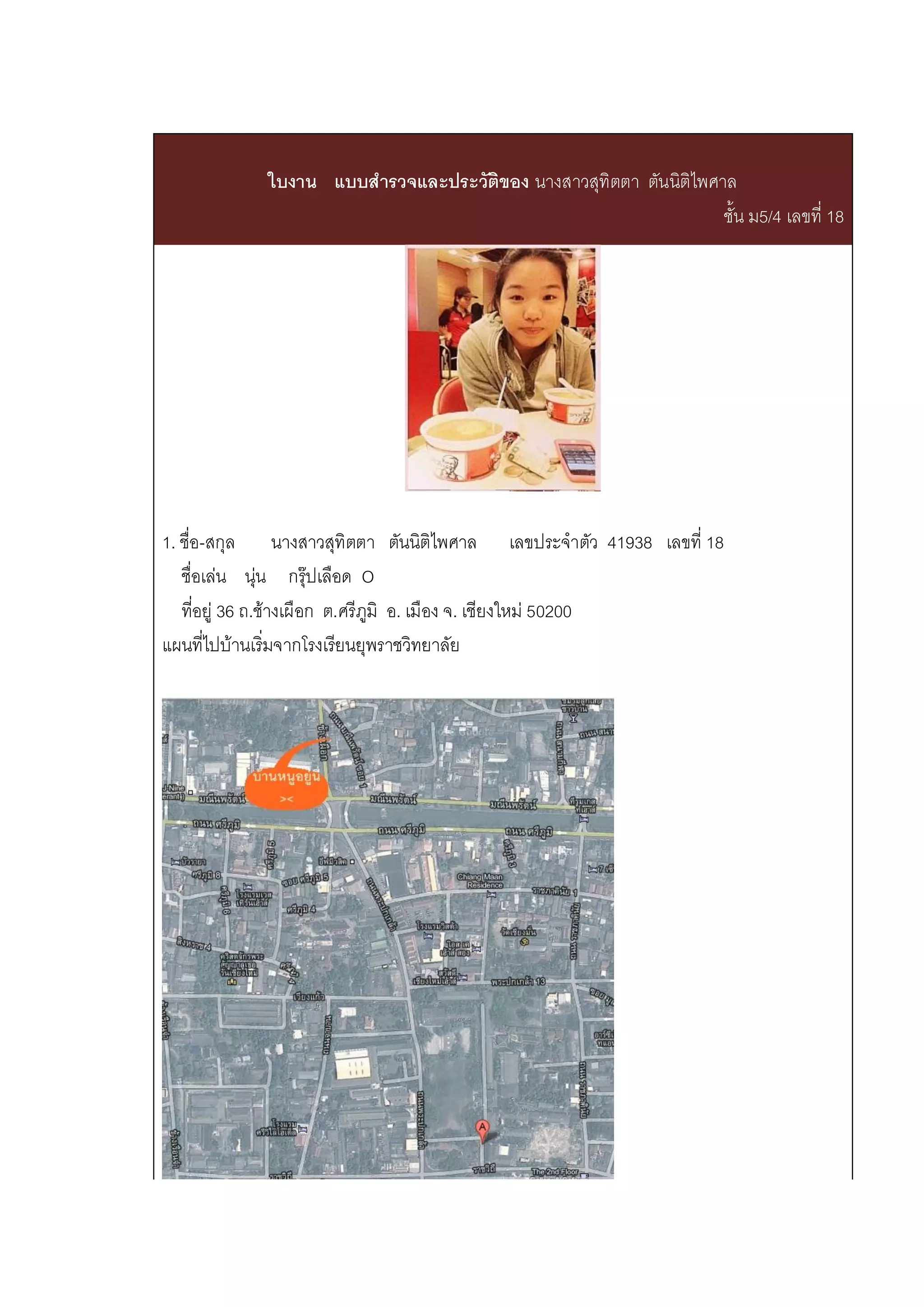 ใบงาน แบบสารวจและประวัติของ นางสาวสุทิตตา