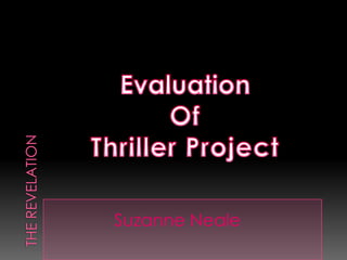 The document provides an analysis of the thriller film created by the student. It discusses the key elements incorporated from generic thriller conventions including an antagonist, mystery, suspense, and representation of social groups. It summarizes the filming and editing process, challenges encountered working with the group, and strengths and weaknesses of the equipment used. The student learned skills using editing software and reflects on how their skills and understanding of thrillers improved from the preliminary task.