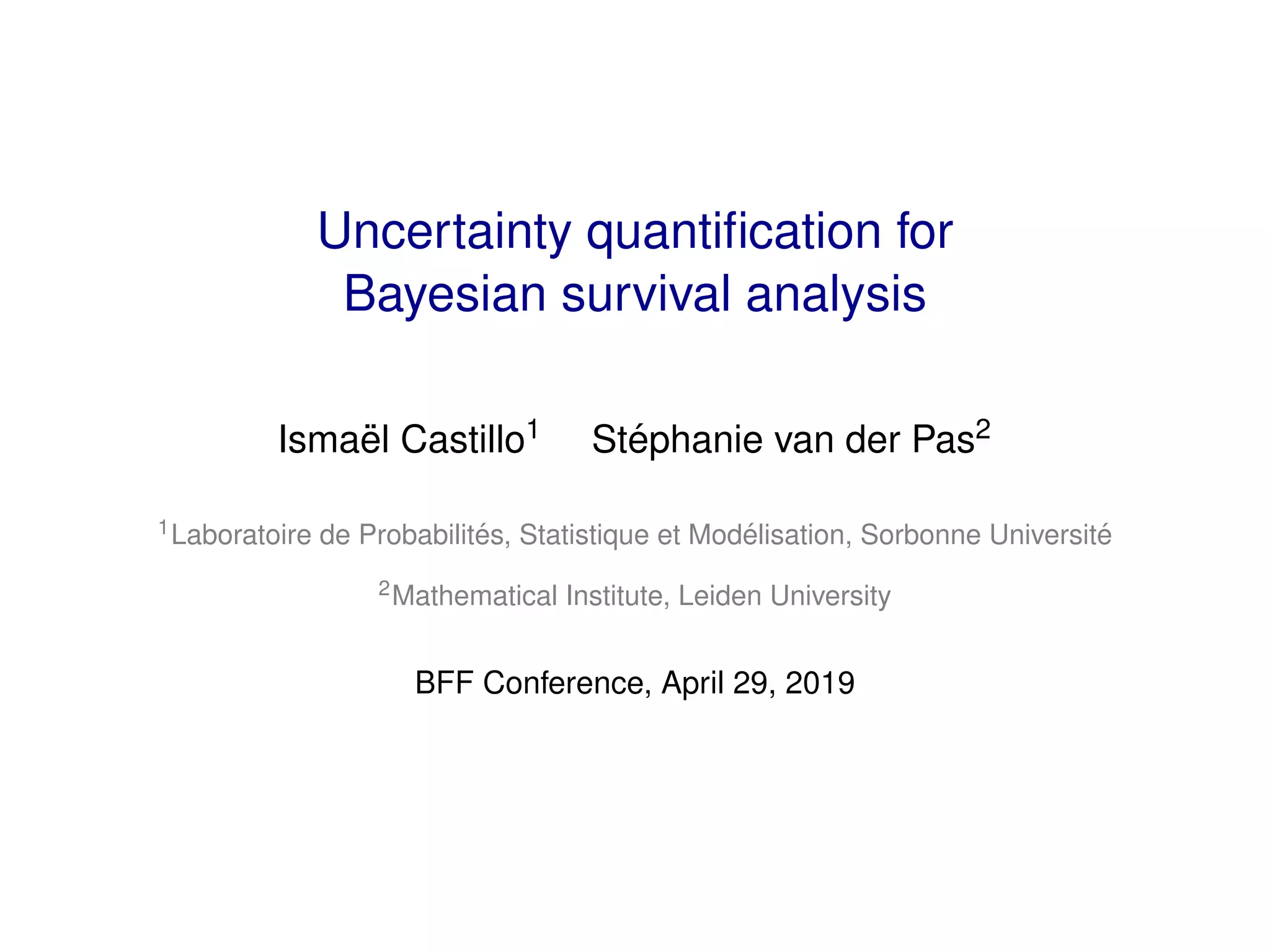 This document discusses uncertainty quantification for Bayesian survival analysis using nonparametric priors on the hazard function. It presents a theorem establishing the minimax convergence rate for the piecewise exponential model with a Gaussian Haar-histogram prior on the log-hazard. The proof uses a maximal inequality and shows the posterior contracts around the true hazard function at the optimal rate.
