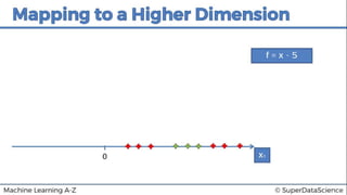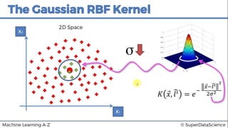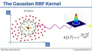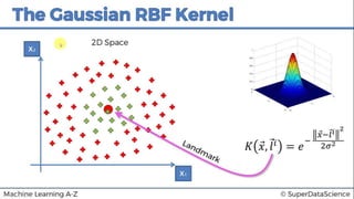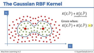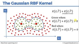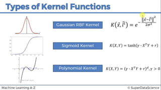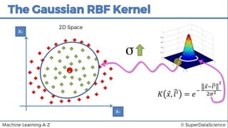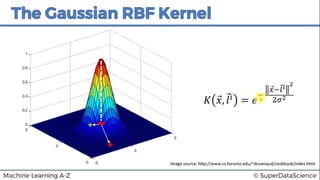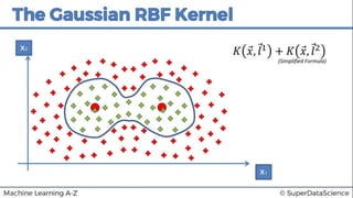 This document discusses support vector machine (SVM) classification using Python and R. It covers importing and splitting a dataset, feature scaling, fitting SVM classifiers to the training set with different kernels, evaluating performance using metrics like confusion matrix, and making predictions on test data. Key steps include feature scaling, fitting linear and radial basis function SVM classifiers, evaluating using k-fold cross validation and classification report.