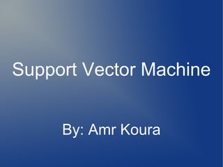Support Vector Machine (SVM) is a supervised learning model used for classification and regression analysis. It finds the optimal separating hyperplane between classes that maximizes the margin between them. Kernel functions like polynomial, RBF, and sigmoid kernels allow SVMs to perform nonlinear classification by mapping inputs into high-dimensional feature spaces. The optimization problem of finding the hyperplane is solved using techniques like Lagrange multipliers and the Sequential Minimal Optimization (SMO) algorithm, which breaks the large QP problem into smaller subproblems solved analytically. SMO selects pairs of examples to update their Lagrange multipliers until convergence.