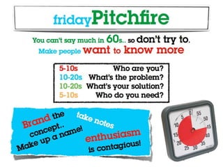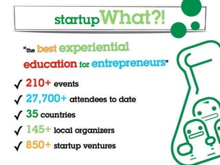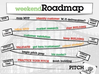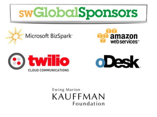 This document provides information about Startup Weekend Evansville, thanking sponsors and speakers and outlining the schedule and logistics. It begins with welcoming attendees to the event and thanking USI College of Business for hosting in their facility. It then lists sponsors and thanks mentors who will be participating. Finally, it provides details on facilities, the schedule which includes pitches, forming teams, working and presenting, and tips for successful Sunday presentations.