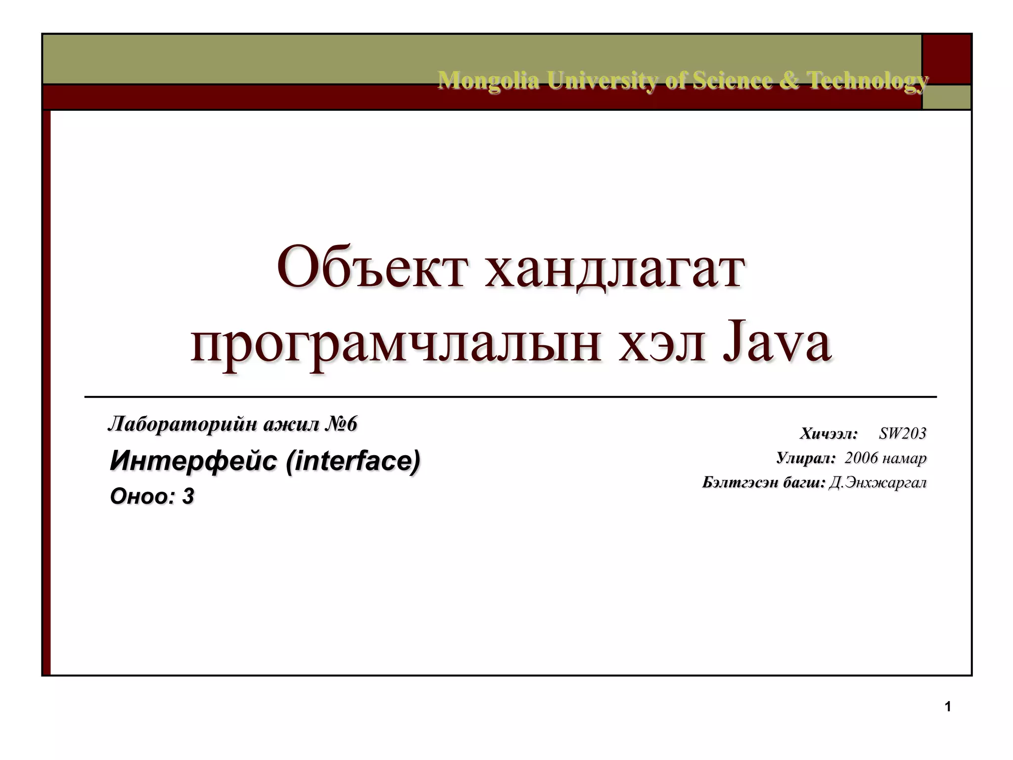 сонгож) интерфейс хэмээх ойлголтыг хэрэгжүүлсэн жижиг хэмжээний