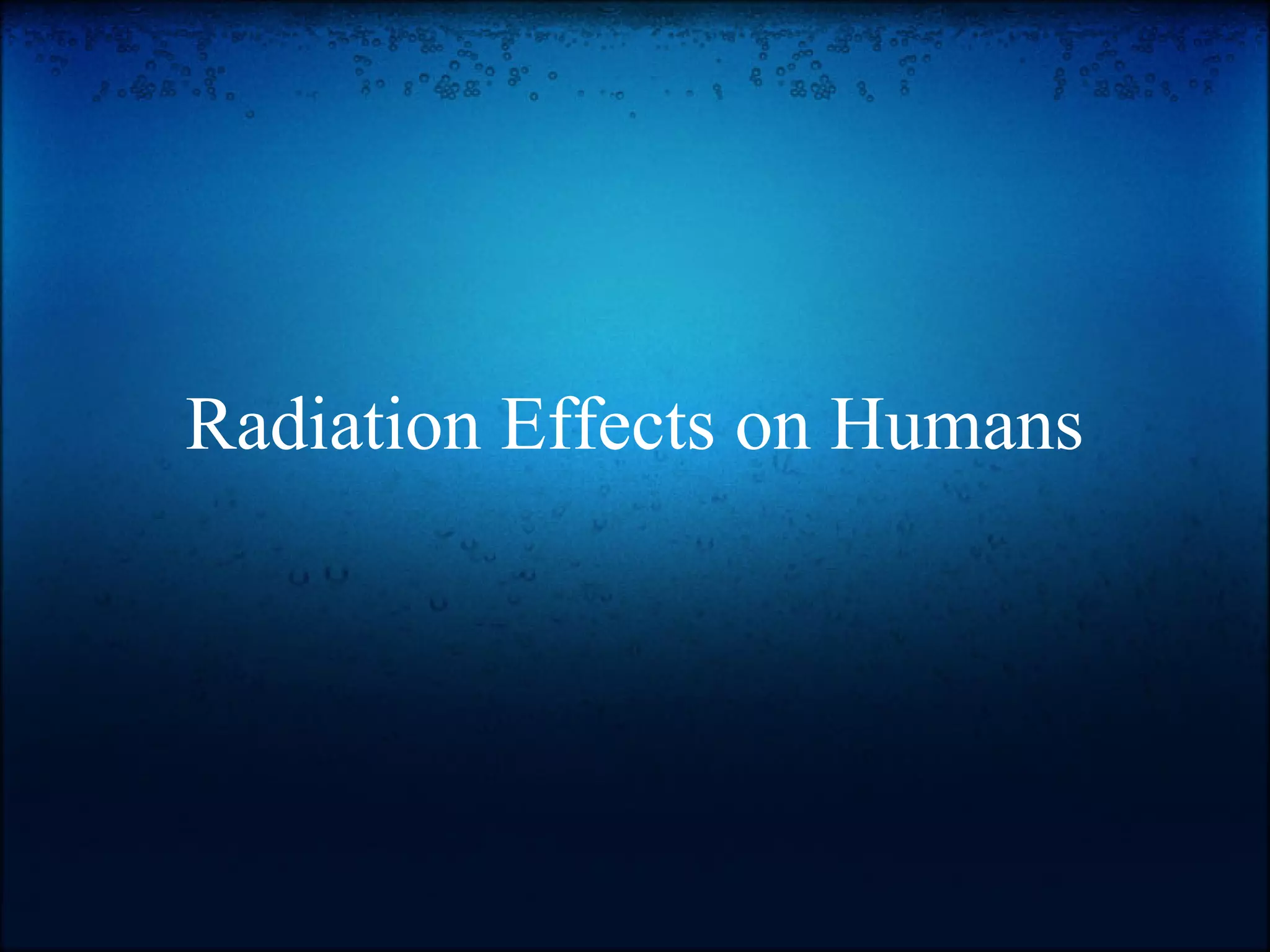 Radiation can damage organic materials like human tissue. The unit used to measure radiation dose absorbed by the body is the rem, with 1 rem being the amount needed to cause damage. Radiation doses below 100 rems do not cause immediate harm, while doses over 300 rems weaken the body by reducing white blood cells, increasing risk of disease. Doses over 450 rems are likely fatal, with symptoms at 800 rems including fever and diarrhea, along with a high probability of developing cancer. While transfusion and bone marrow transplants can help radiation effects, no treatment exists for fatal radiation doses. Proper radiation knowledge is important.