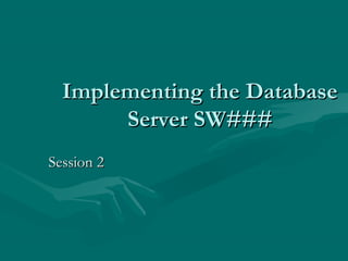 The document discusses database hardware requirements like RAM, disk space, processors and networks and how they impact database performance. It also covers topics like transaction logging, how databases and their related files are structured, and the different SQL data types and statements used to work with databases. Various SQL objects like tables, views, indexes and their creation are explained along with examples.