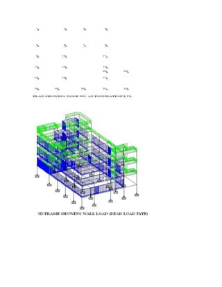 The document provides details about the design of a G+2 residential building structure located in Delhi for Swati Structure Solutions Pvt. Ltd. It includes information on the design loads as per Indian codes, analysis of the structure using STAAD Pro software, load calculations, seismic design criteria as per IS 1893, and design and detailing of reinforced concrete structural elements. The structure will consist of a column-beam-slab framing system to resist vertical and lateral loads.
