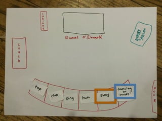 This document summarizes the development of SwaytheBand, an interactive activity using handheld controllers to support shared musical experiences for dementia patients. It was informed by research finding that residents engaged organically with music. The controllers change color with the beat and encourage holding hands. Experts provided guidance, such as making it fun rather than perfunctory. The goal is to use music to promote community moments and determine if and how the technology engages and enriches residents. A song was chosen to illustrate its use and promote swaying and reminiscence. Questions are posed about how residents and caretakers may use and appropriate SwaytheBand.
