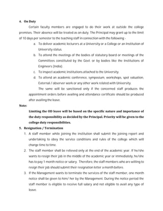 - The college operates Monday to Saturday from 7:30am to 1:30pm, except for notified holidays. Staff must sign in and out daily and abide by leave policies.