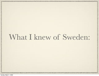 Sweden was known for ABBA, IKEA, AHA, and VOLVO brands, but the author discovered that the Nobel prize originated in Sweden, Pipi Longstockings is Swedish, the current royal family has French origins, and AHA is actually from Norway, showing Sweden to be a country with more surprises than initially known.