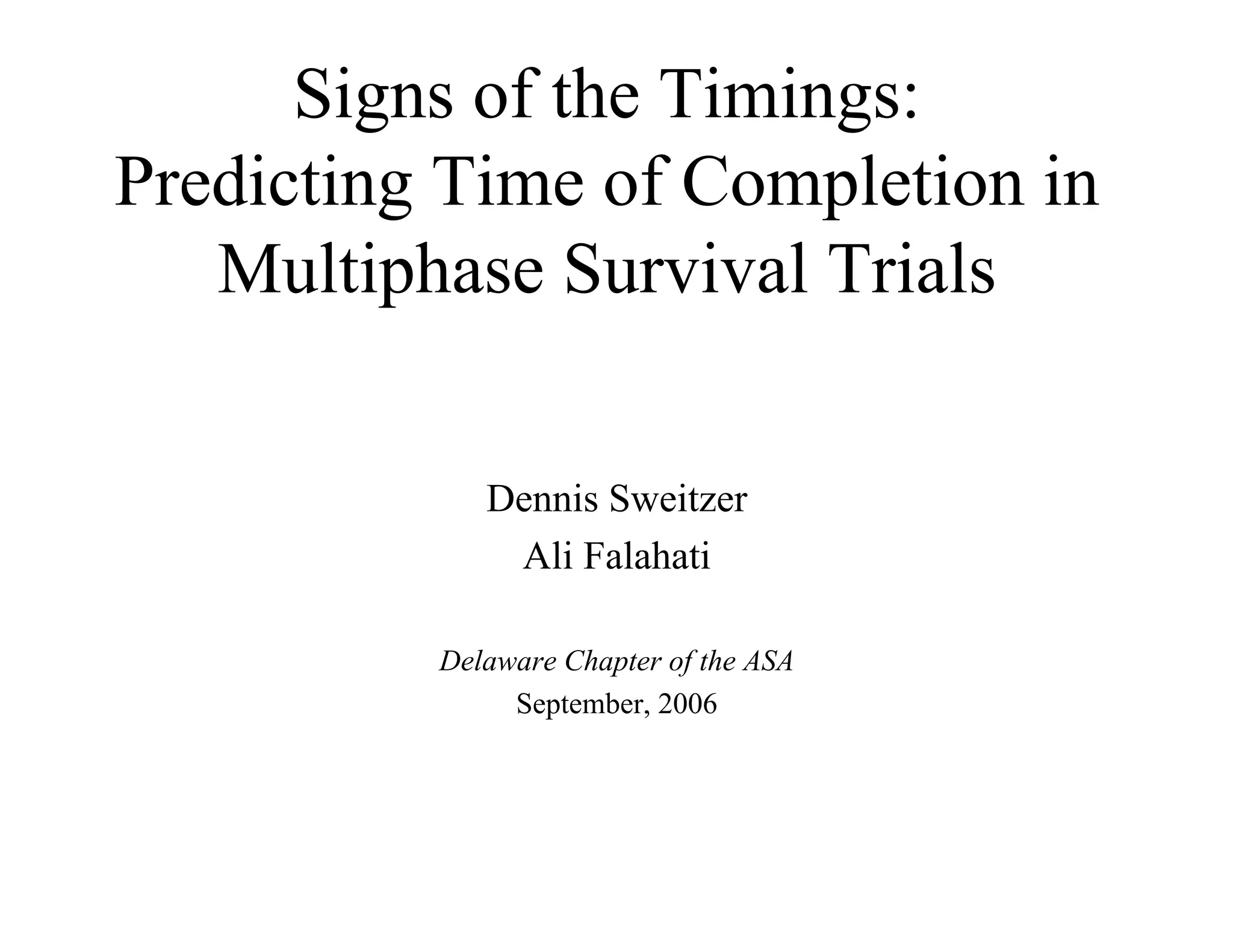 The document discusses the complexities and methodologies in managing multiphase survival trials, particularly focusing on predicting completion times and handling high withdrawal rates. It emphasizes using stochastic modeling to assess patient progression through various trial phases, optimizing enrollment and randomization strategies, and addressing uncertainties related to relapse rates and trial outcomes. Additionally, it outlines the importance of continuous data updating and how simulations can guide trial management decisions effectively.