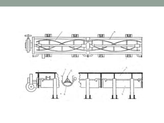 Dokumen tersebut merangkum tentang Swenson Walker Crystallizer. Alat ini terdiri dari palung setengah silinder terbuka dengan pengaduk helikal di dalamnya untuk mengalirkan larutan secara homogen. Larutan masuk dari ujung satu dengan suhu tinggi dan keluar dari ujung lain dengan suhu lebih rendah untuk memisahkan kristal dari larutan. Alat ini berguna untuk proses kristalisasi dengan pendinginan untuk larutan yang mudah ber
