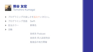 岩手で 2018/07/14 に開催した『みんなで Swift 復習会 GO! in 岩手』で使ったオープニングと本編の資料です。Swift の関数について、最後の方の2枚のスライドを使って1時間30分ほどみんなと談笑しました。