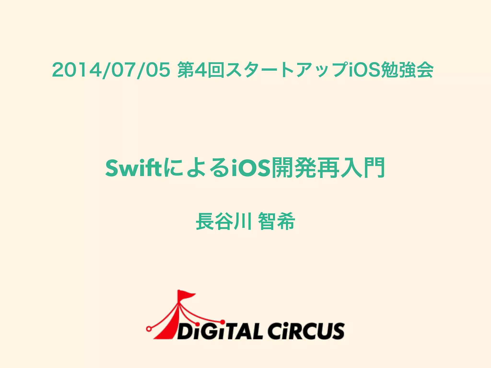 7/5(土)にオープンネットワークスペース代官山で実施された第4回スタートアップiOS勉強会での発表資料です。 下記スライドもあわせてご覧下さい。(このスライドの更新・増補版です) http://www.slideshare.net/hasegawatomoki/swift2014