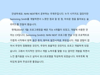 어는 C#입니다. Swimming Smith는 NHN NEXT 프로그램 연습 수업 프로젝트로