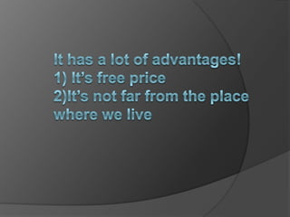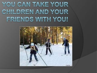 The document highlights the advantages of a skiing club located near school no119, citing its convenience, modern facilities, and lack of crowds. It mentions the costs for entry and outlines the necessary equipment and special clothing required. The club operates from 4 p.m. to 7:30 p.m.