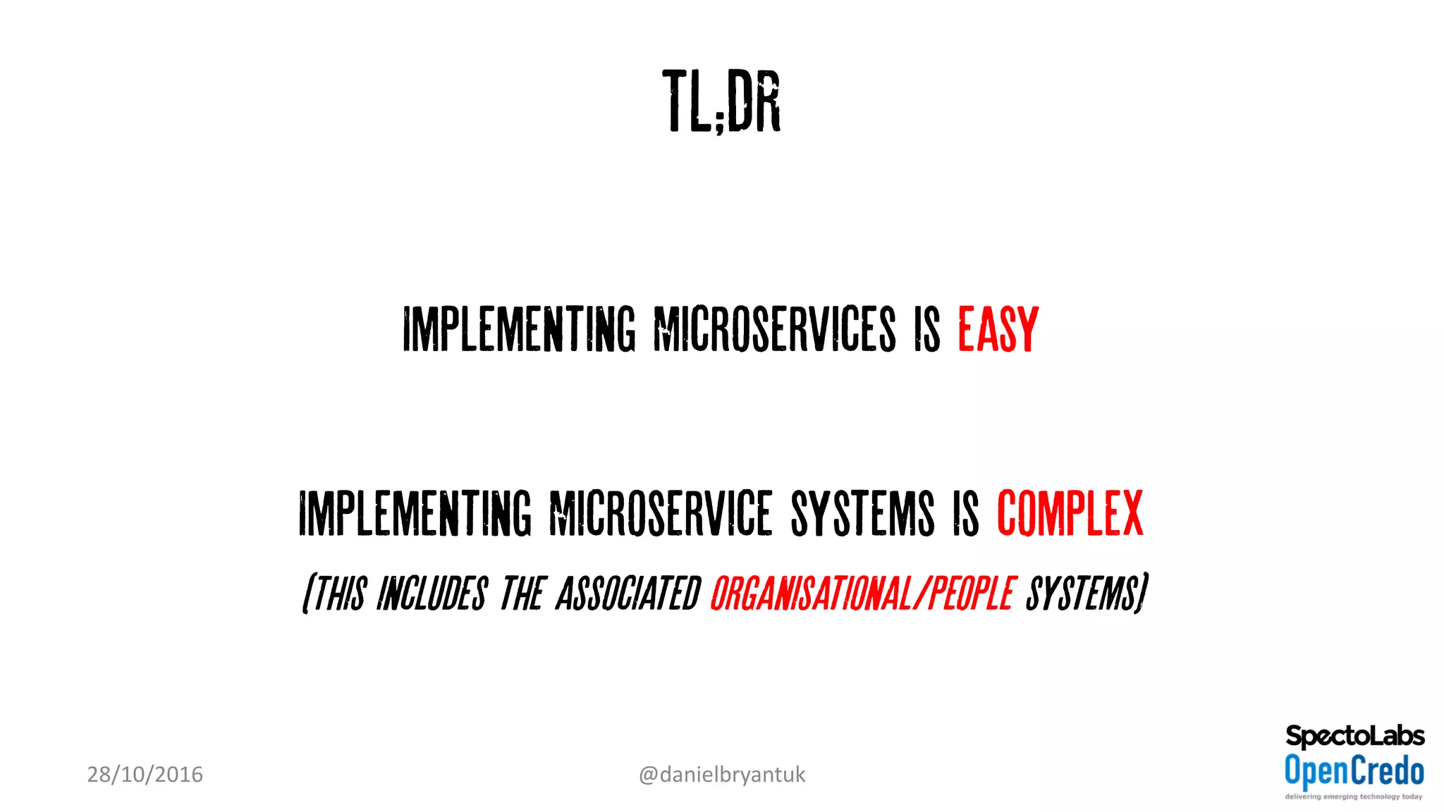 The document discusses the complexities involved in implementing microservices, emphasizing that while the concept is straightforward, executing a microservice system is complicated. Key themes include the necessity for technical leadership, strategic readiness, effective tooling, and fostering a culture of constant learning and visibility. It warns against superficial adoption (cargo culting) and highlights the importance of understanding organizational dynamics and responsibilities in the successful implementation of microservices.
