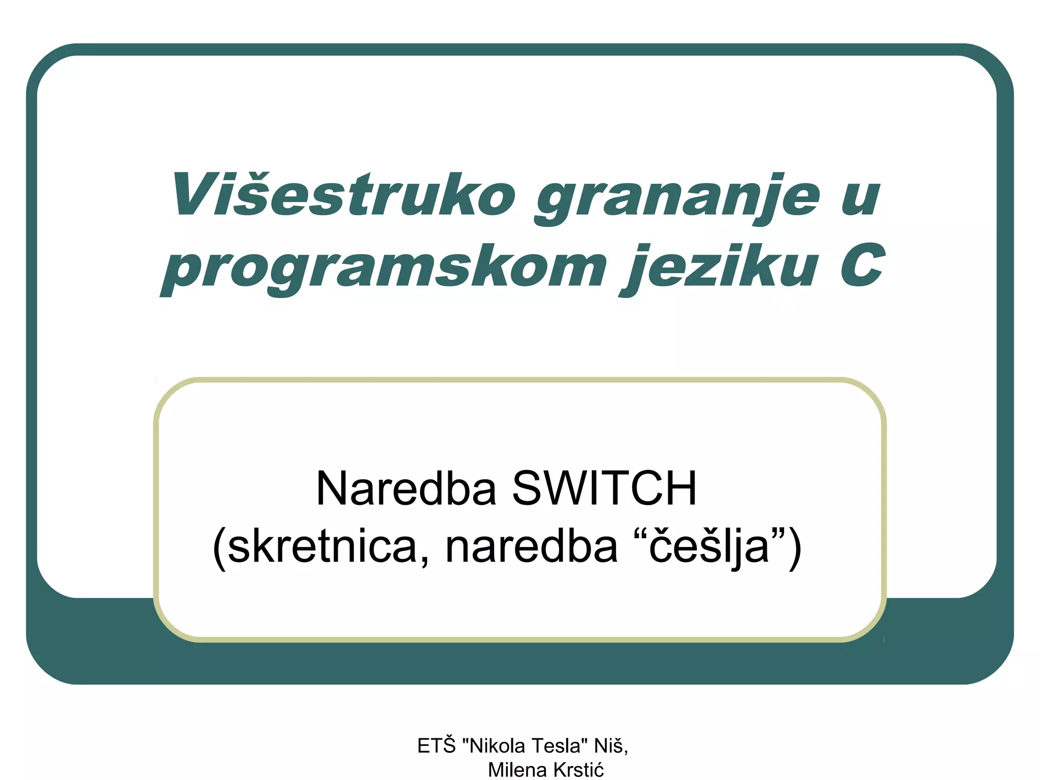 Naredba SWITCH predstavlja tzv. skretnicu.