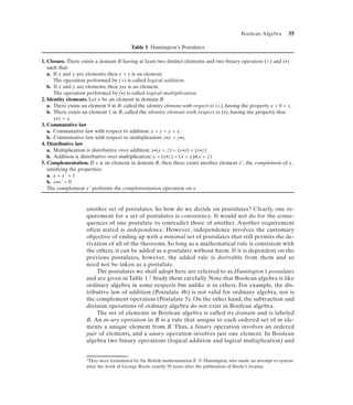 2) Huntington's postulates define the rules of Boolean algebra, including closure, identity elements, commutative laws, distributive laws, and complementation. The duality principle states that results remain valid when logical operators and identity elements are swapped.