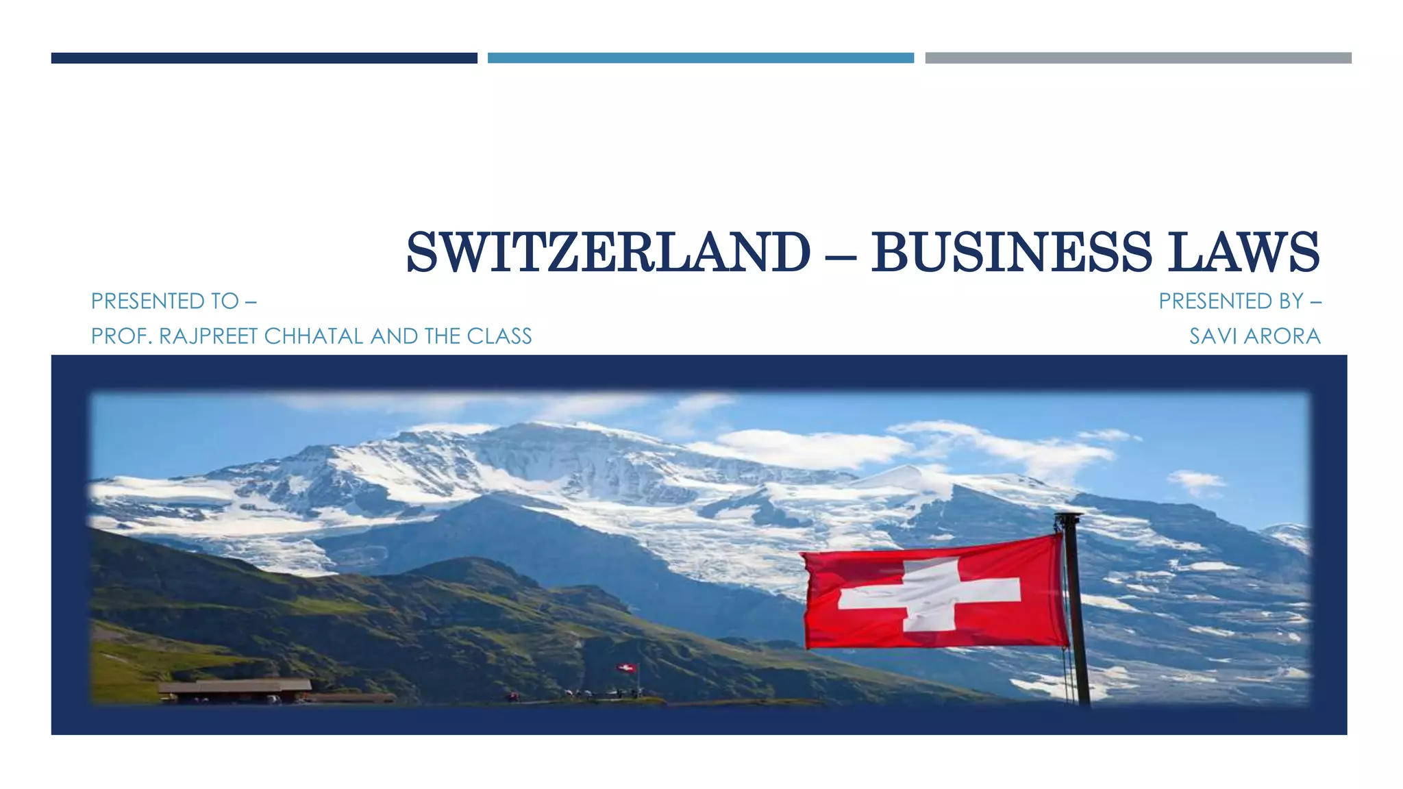 The document summarizes key aspects of value-added tax (VAT) in Switzerland. It discusses the scope of VAT, who is liable, group registration rules, reverse charge mechanisms, applicable tax rates of standard 8%, reduced 2.5%, and special 3.8% rates. It also covers examples of tax-exempt supplies with and without credit, time of supply rules, input tax recovery, invoicing requirements, and VAT returns and payments.