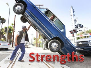 The document discusses performing a SWOT analysis to understand a company's strengths, weaknesses, opportunities, and threats. It recommends examining internal factors like products, speed, costs as well as external factors including competition, legislation, and economic conditions to identify a company's point of difference and areas for improvement.