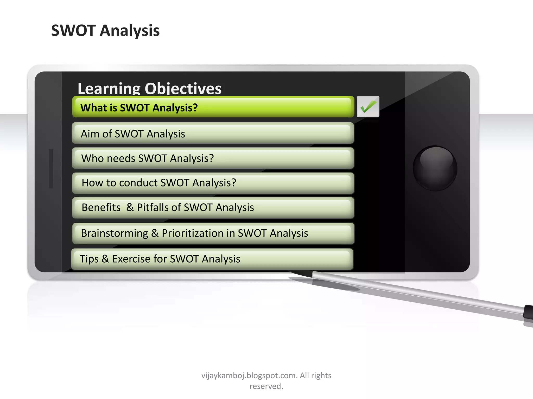 SWOT analysis is a technique used to understand the strengths, weaknesses, opportunities, and threats involved in a project or business. It involves specifying the objective of the business venture or project and identifying the internal and external factors that are favorable and unfavorable to achieving that objective. Such an analysis can be carried out for a product, place, industry or person. Performing a SWOT analysis helps understanding of the favorable and unfavorable factors that exist currently as well as those that will emerge in future, and aids in strategic decision making.
