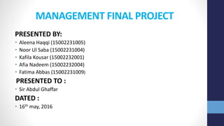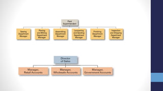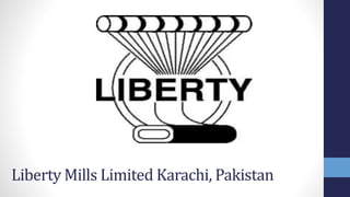 This document provides an overview of Liberty Mills Limited, a textile processing and production company in Karachi, Pakistan. It discusses the company's introduction, SWOT analysis, planning, organizing, leading, and controlling functions. Some key points include that Liberty Mills was established in 1964, has a production capacity of 500,000 square meters per day, and follows principles of management in most departments. It also obtains various certifications and participates in international textile exhibitions.