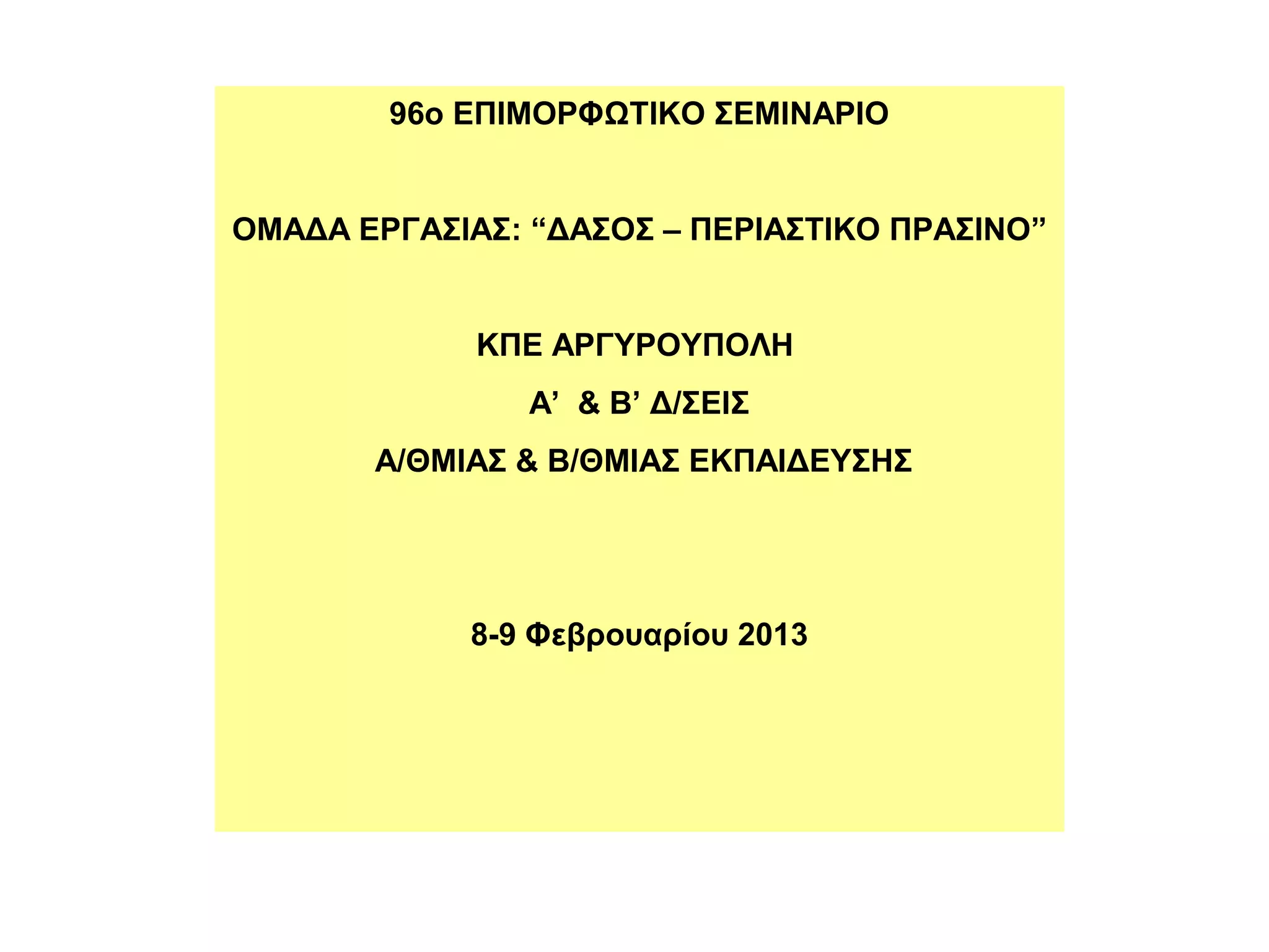δασικών εκτάσεων 5.Παιχνίδι ρόλων