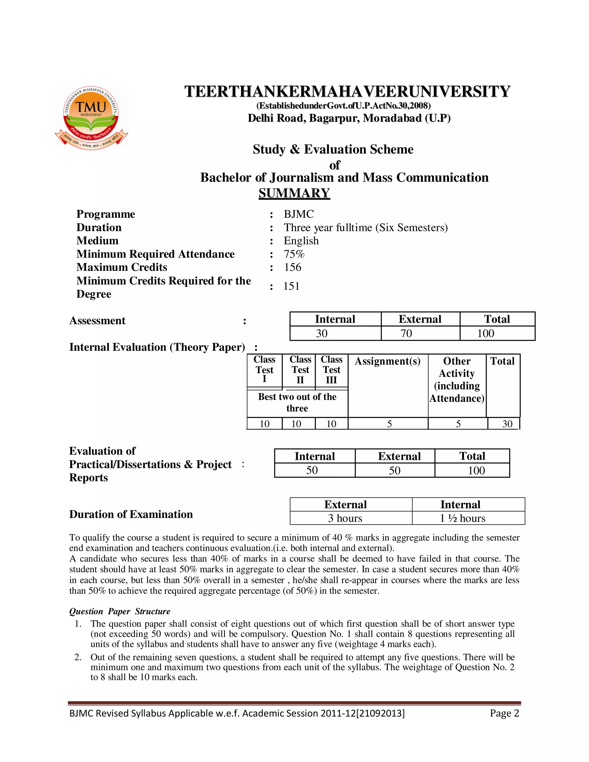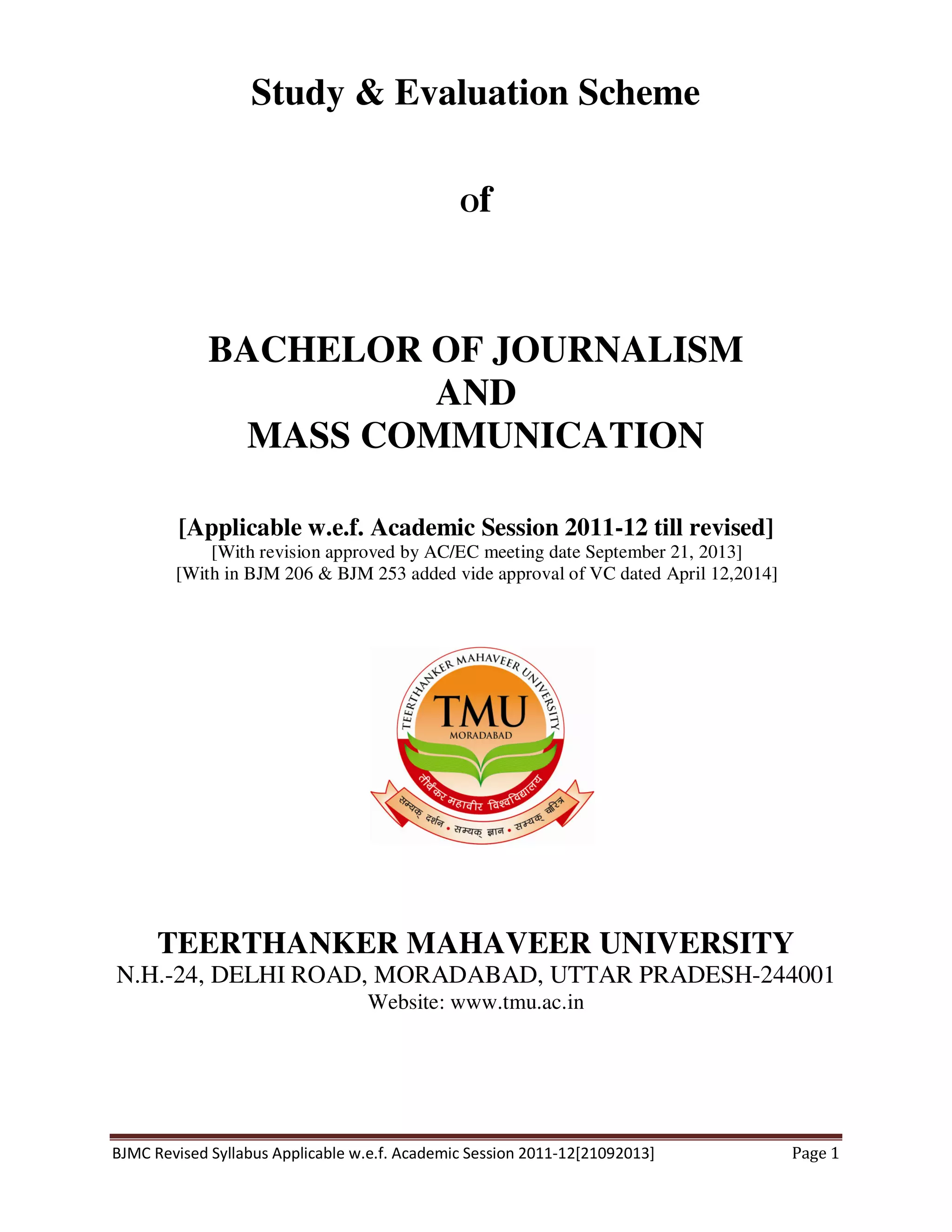 Programme: BJMC (Bachelor of Journalism and Mass Communication)