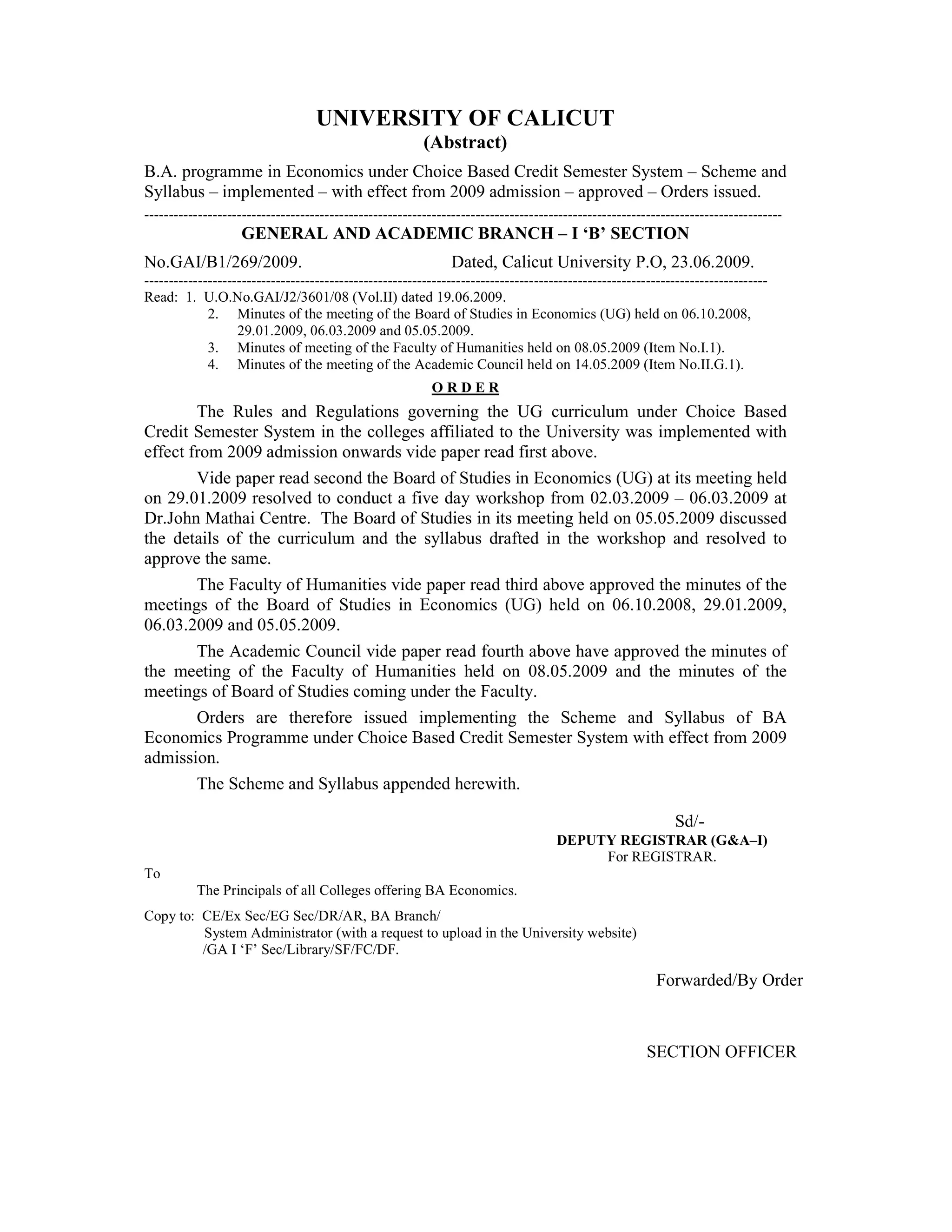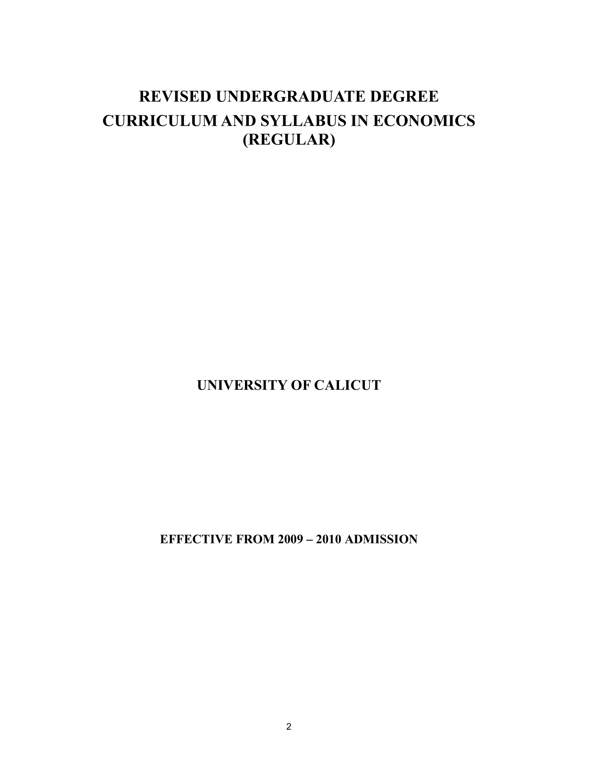 This document outlines a proposed revision to the curriculum and syllabus for the Bachelor of Arts program in Economics at the University of Calicut.
