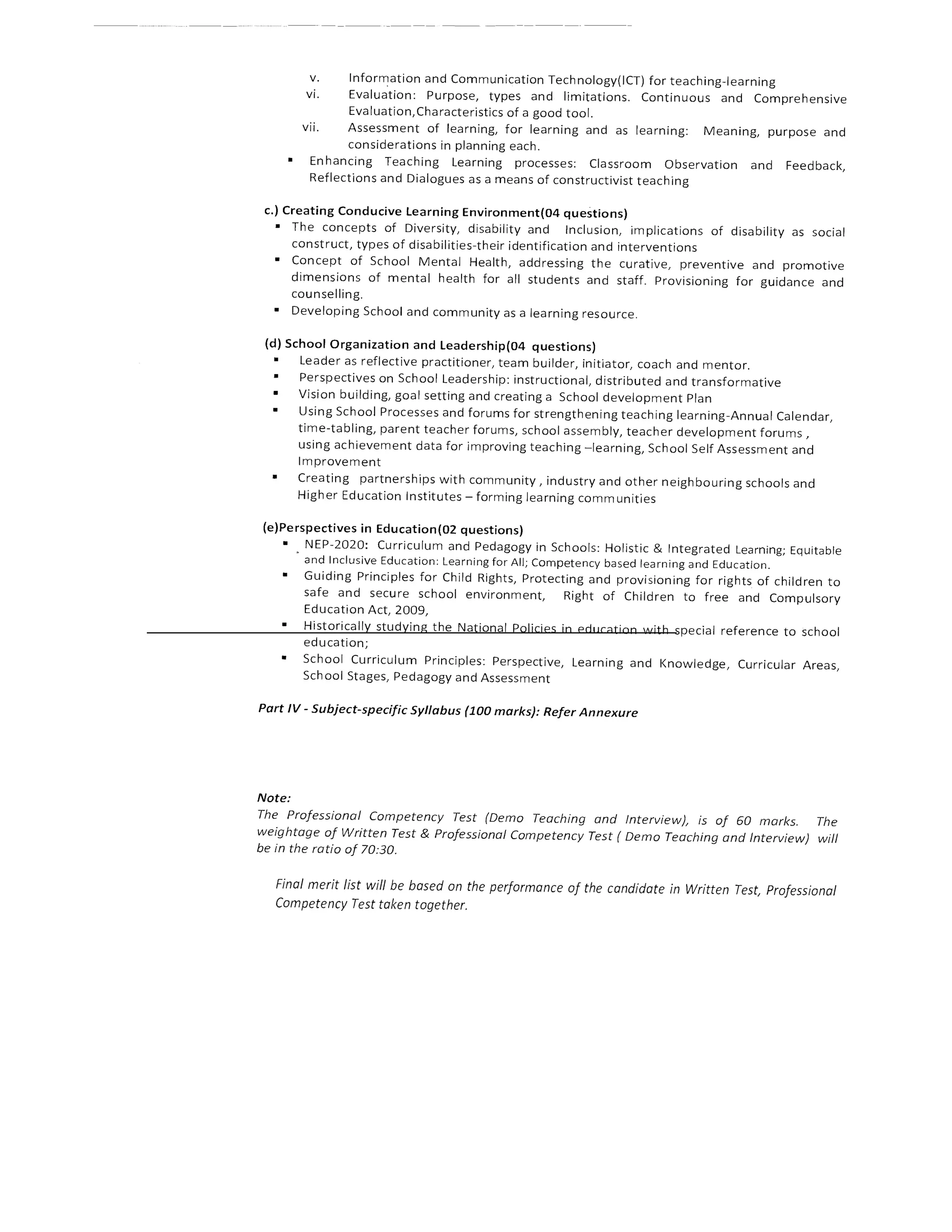 The document provides a syllabus for the post of PGT-Computer Science. It covers topics such as computer organization, operating systems, Python programming, data structures, algorithms, databases, computer networks, emerging technologies, data handling using Pandas, database queries using SQL, societal impacts of computers and an introduction to computer systems. The questions will test an in-depth understanding and application of concepts at the post-graduation level.